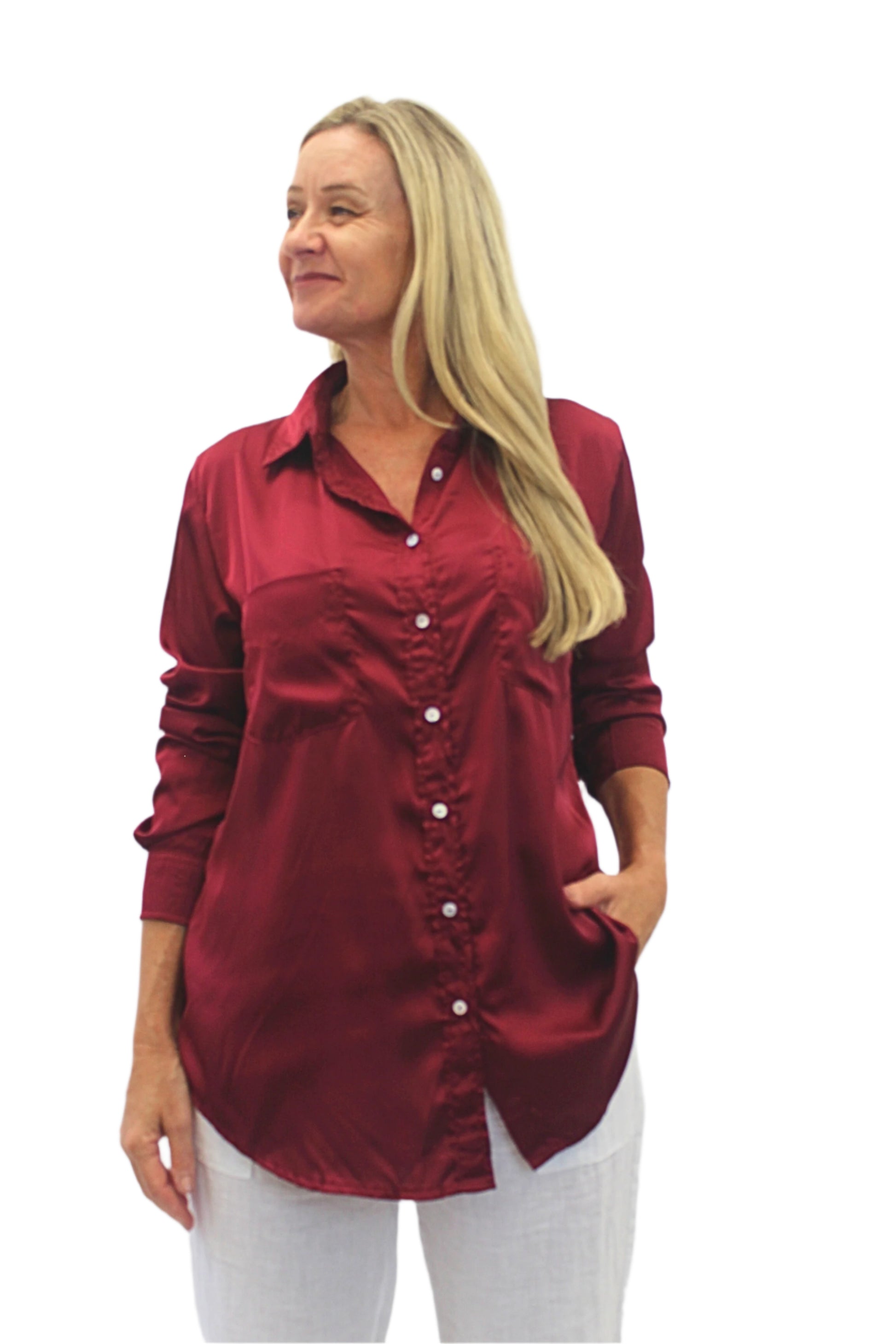 A rich claret hue, this shirt captures the essence of the ‘70s, making it a standout addition to any collection. Whether you're dressing it up for a night out or keeping it casual for daytime adventures, this versatile piece seamlessly transitions from day to night.