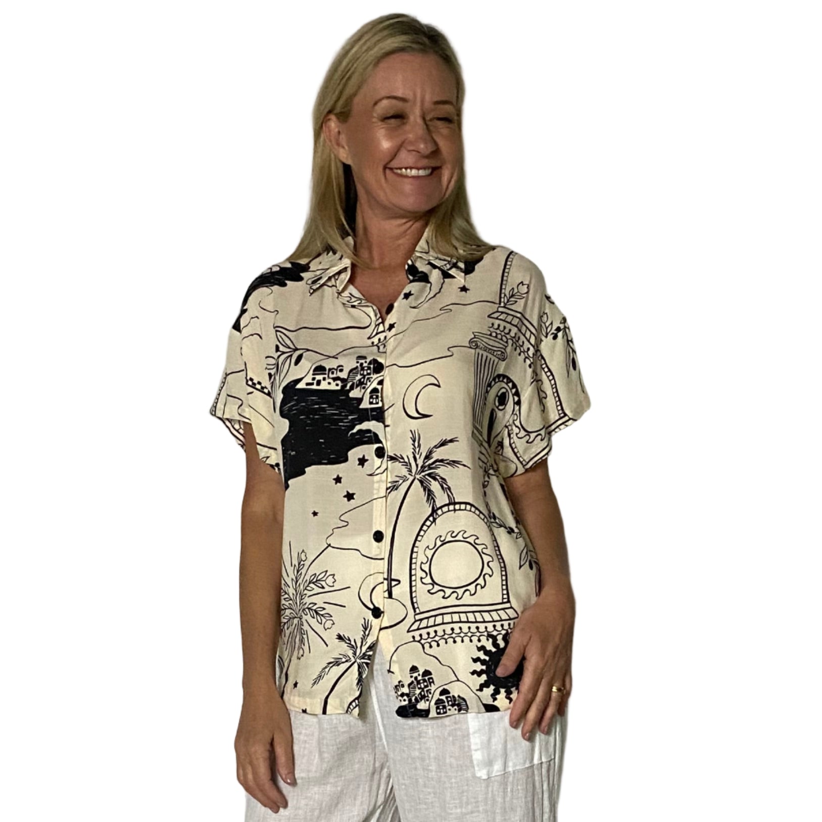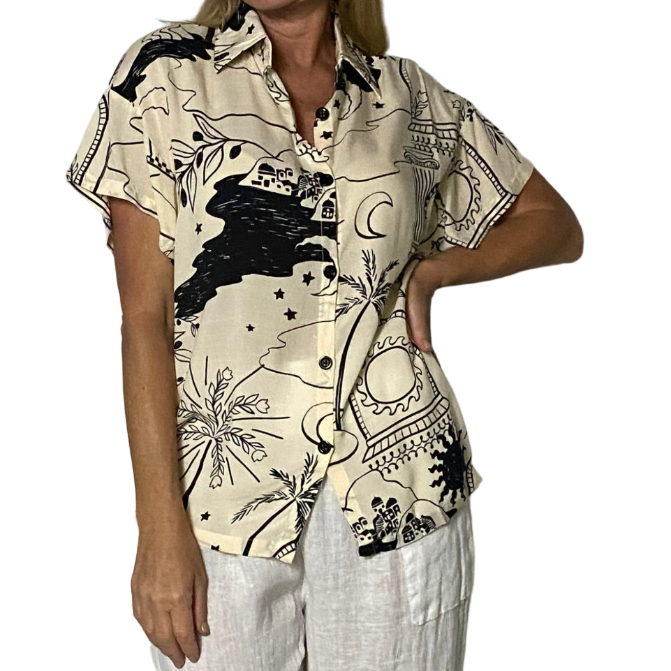 Reet Petites' Gorgeous Soft Rayon Funky Print Short Sleeve Button-Up Shirt. Designed to celebrate individuality and comfort, this beauty ranges from XXS to XL, but is based on the fun size ladies. Being its maiden voyage I will tweek the sizing on this as currently you need to tweek sizing. Versatile in nature, this shirt can be worn buttoned up or open as a lightweight jacket for that effortlessly relaxed vibe.