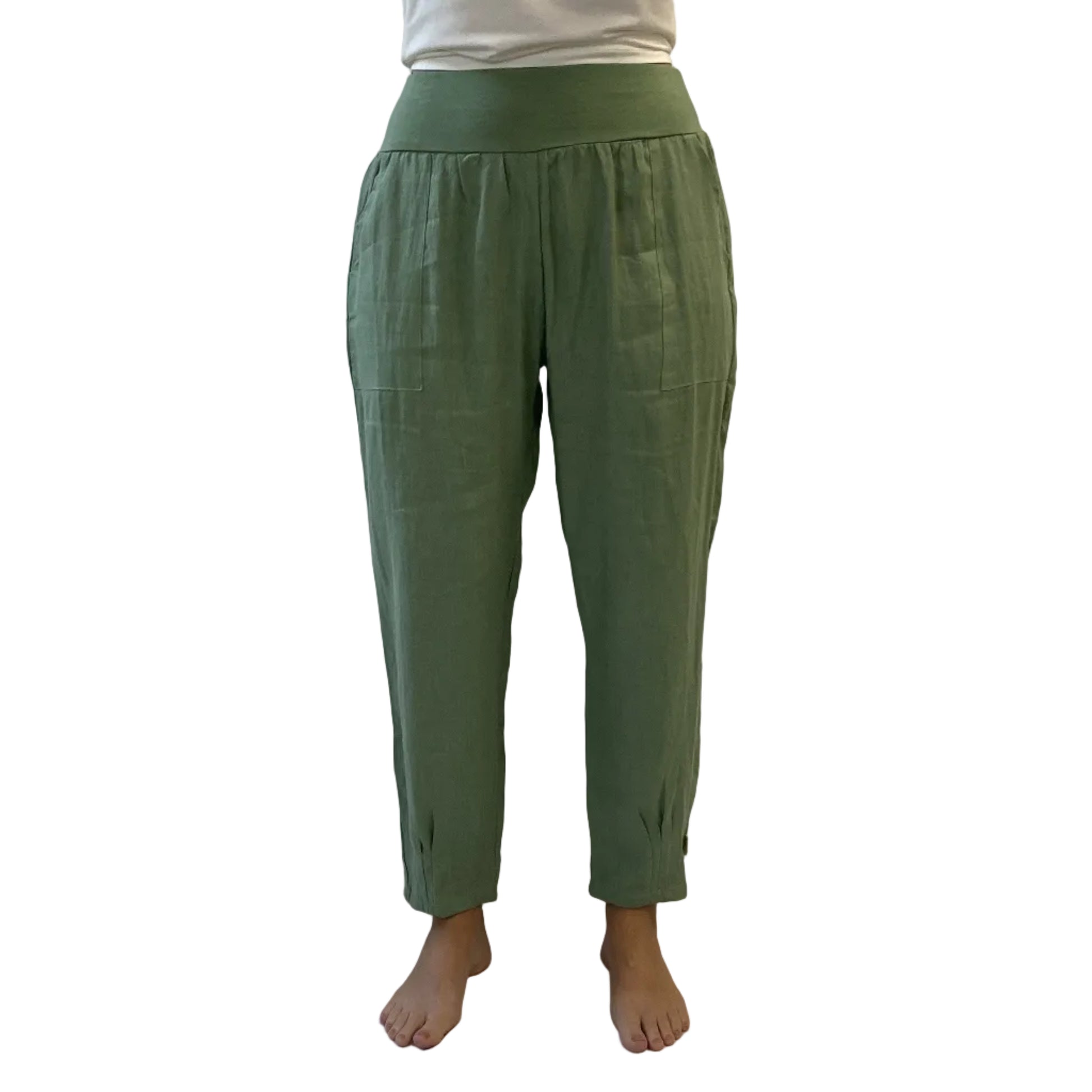 Crafted from a light breathable linen, these pants feature a soft cotton stretch waistband that ensures a perfect fit without sacrificing comfort. The tapered leg design offers a modern silhouette, making them versatile enough for both casual outings and more polished occasions.