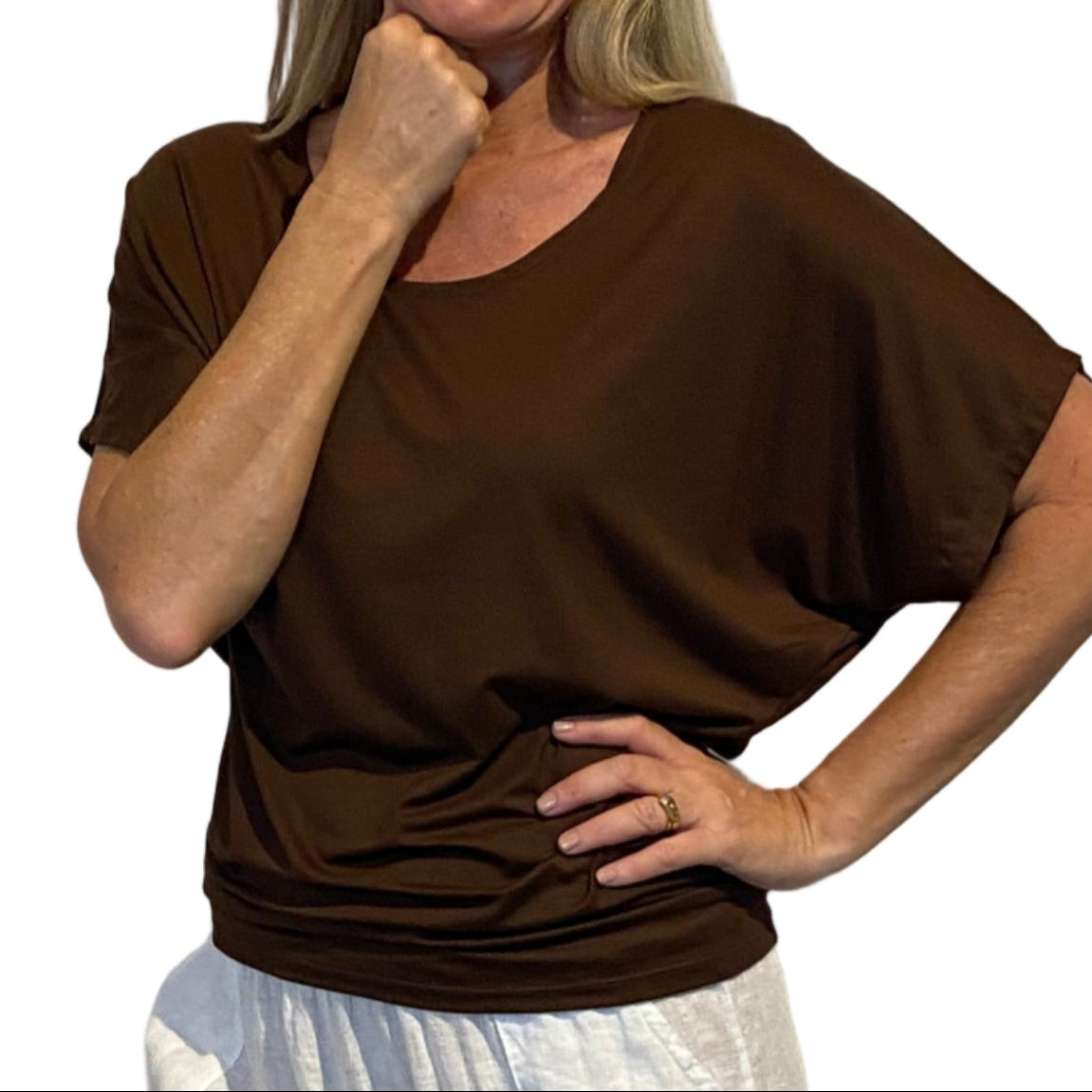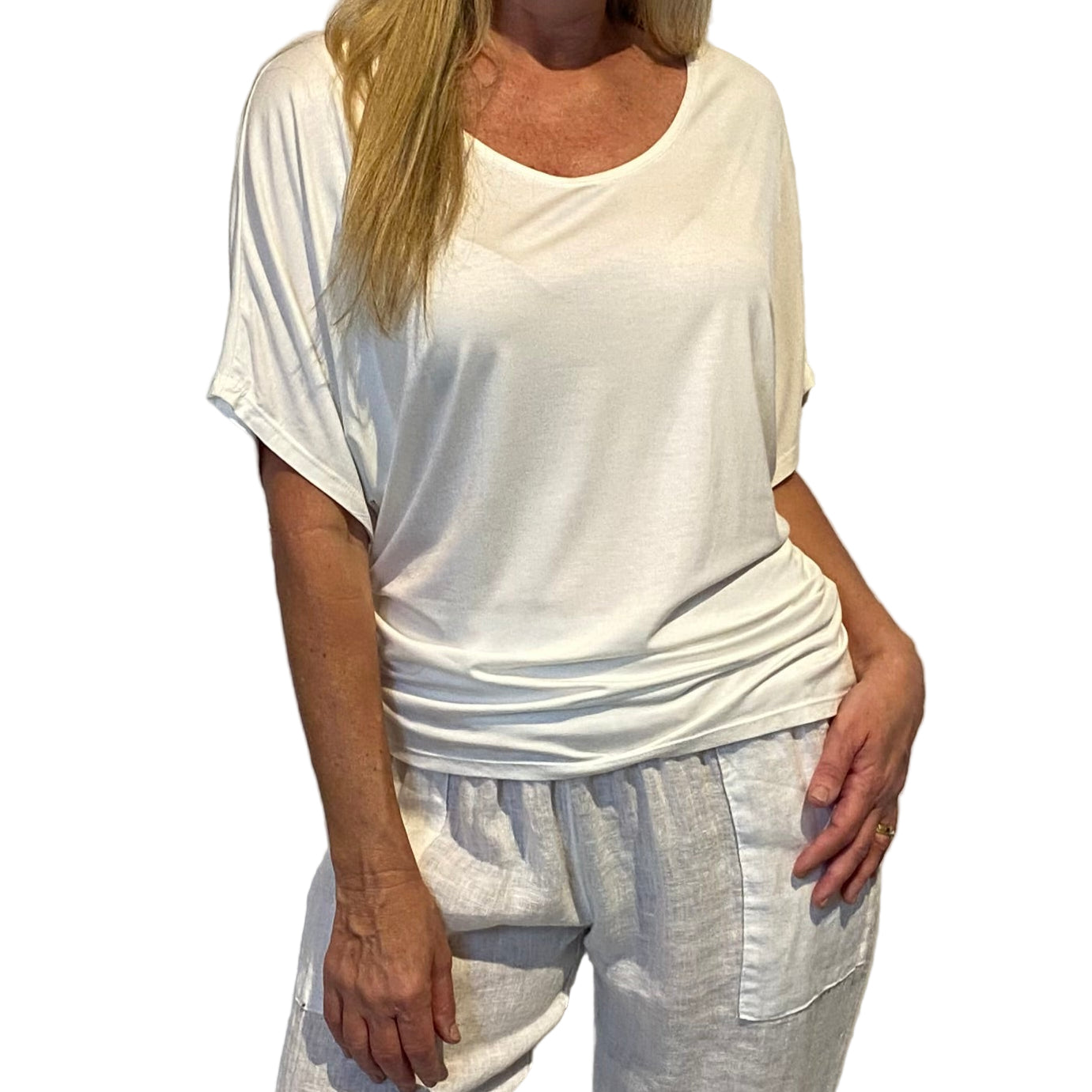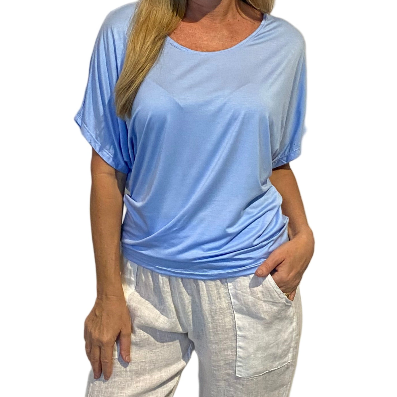 Say hello to one of Shaz's all-time favourite tops! Made from a soft and stretchy 95% cotton/ 5% elastane blend, the Suzy Top is as comfy as it is flattering. Designed to be worn on or off the shoulder. As it a tapering style over the tummy it can be scrunched to sit perfectly, giving a super flattering look. This is perfect style for those with a fuller bust.